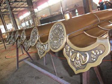 公司所制作的銅工藝品展示出公司藝術(shù)的雄健,華美和自然秀穎之風(fēng)格。公司以新穎的設(shè)計(jì)方案,精湛的施工技術(shù)得到客戶的好評(píng)!經(jīng)過多年的努力拼搏和發(fā)展,我公司現(xiàn)已擁有大型剪折及各種配套設(shè)備,設(shè)備齊全,廠房寬敞。我公司不僅具備承接各種大型工程的能力,同時(shí)還能滿足不同的建筑風(fēng)格??筛鶕?jù)客戶的要求進(jìn)行制作和加工高檔的銅裝飾品,公司承接廟宇樓臺(tái)銅建筑工程、園林古建、城雕環(huán)藝、別墅、大廈、酒店賓館銅工程業(yè)務(wù)。公司生產(chǎn)的產(chǎn)品是工藝美術(shù)中絢麗的魂寶。高品位的設(shè)計(jì)理念和專業(yè)的鍛打、焊接、鑄、軋、刻、鑲、沖、鎏金、氧化作舊、腐蝕上色。深得廣大客戶的一致好評(píng)和業(yè)內(nèi)人士的認(rèn)可。